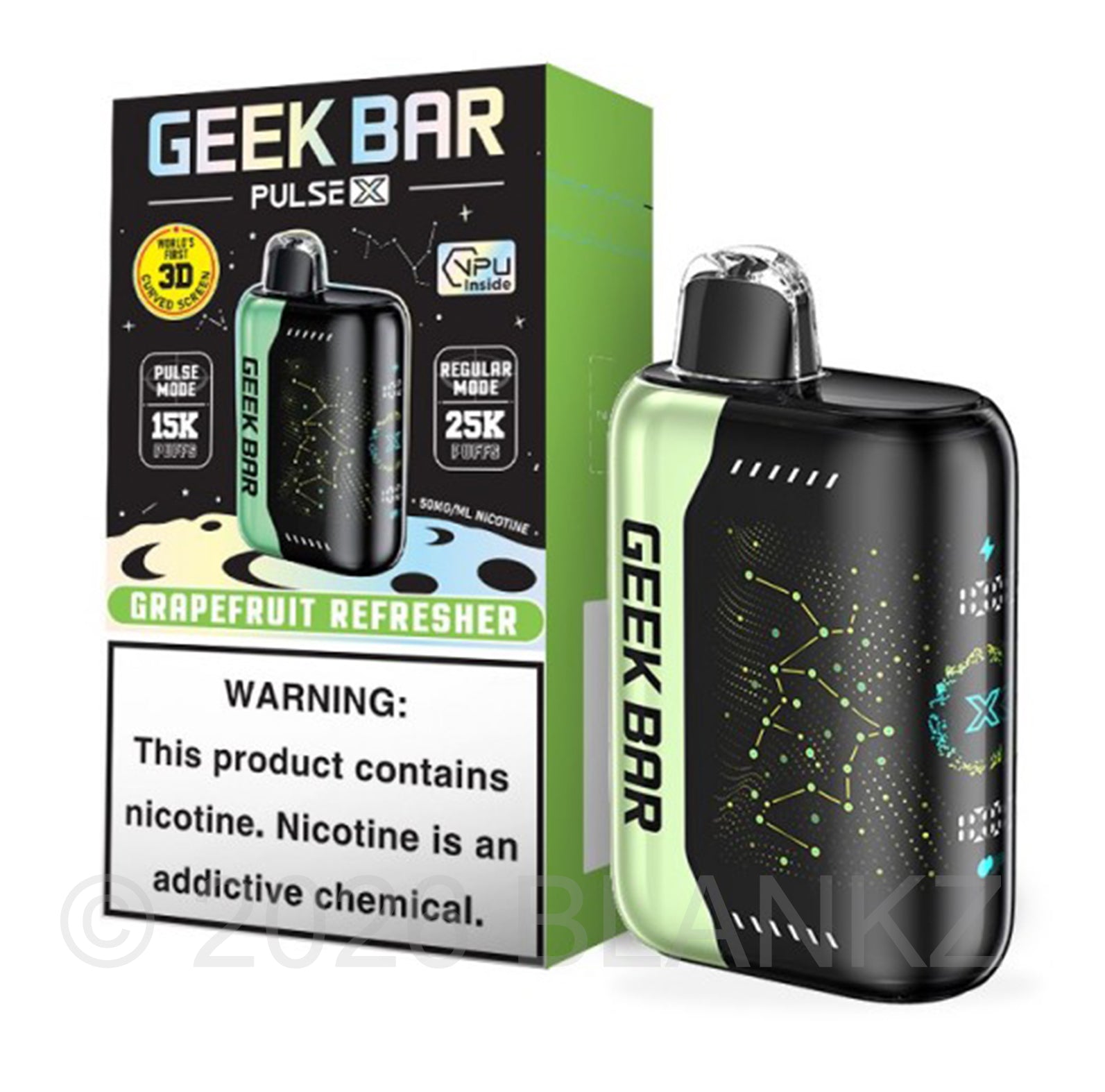 - The First 3D Curved Screen: What next? Stay informed at a glance, in real time, with the first of its kind 3D curved screen. The Geek Bar Pulse X Vape is constantly displaying essential information you need to know, such as battery level, vaping mode, and e-liquid level all with unparalleled clarity and style. People will notice!
